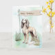 Elegante y sereno, el Saluki está a la luz del sol, un hueso que se esconde cerca. Esta tarjeta es perfecta para alguien elegante en todos los sentidos, con un espíritu tranquilo y un corazón profundo.