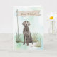 El Weimaraner es elegante y está situado en la hierba, con un abrigo plateado que capta los suaves tonos del cielo. Esta tarjeta es ideal para alguien elegante, inteligente y siempre impactante a su manera.