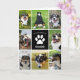 Esta hermosa tarjeta conmemorativa personalizada de perro está personalizada con adorables imágenes y recuerdos de tu dulce cachorro. Personaliza esta atenta tarjeta de condolencias con tus propias 8 fotografías de mascotas alrededor de un cuadrado negro con una hermosa huella de pata blanca y el nombre de tu perro en el centro para expresar tu simpatía. Un diseño de recuerdo elegante para alguien que sufrió la pérdida de su querido perrito.