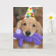 ¡Brilla el día de alguien con esta bonita tarjeta de saludo! Design presenta a un perro recuperador de oro que está usando un feliz gorra de fiesta de cumpleaños, y llevando un juguete morado en su boca. El personalizable dentro del texto dice: "Espero que tu cumpleaños sea maravilloso".