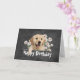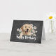 Curado recuperador dorado con margaritas blancas en textura de cuero gris oscuro para cualquier cumpleaños de edad.