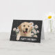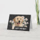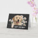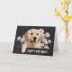 Un recuperador de oro lindo con margaritas blancas en el patrón de puntos de polka blanco y negro para cualquier cumpleaños de edad. Todo el texto se puede editar.