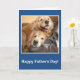 Esta tarjeta de saludo del Día del Padre muestra una fotografía de dos sonrientes perros recuperadores de oro que están luchando con su papá humano. El texto interno dice: "Papá, ¡eres el mejor!" pero esto puede cambiarse o eliminarse para adaptarlo a tus necesidades. También se puede cambiar el color de fondo.