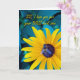 Tarjeta de Recupérate, siéntete mejor pronto para una hermana. La tarjeta tiene una foto de una flor de Susana de ojos negros y una abeja en el medio de la flor. Hermana, espero que recuperes tu ZUMBIDO pronto, texto amarillo en la portada. Esquema de colores amarillo brillante, verde azulado y marrón. Arte, imagen y verso copyright © Shoaff Ballanger Studios, 2022.