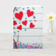 This design shows a white wooden background with faint horizontal planks that add gentle texture behind the scene. Red and blue paper hearts are scattered across the middle, spaced loosely so they feel light and easy, like love notes drifting by 🥰. Along the left edge, two bare brown branches reach inward, giving a quiet, earthy frame against the bright hearts. A few smaller hearts include soft color fades from yellow into purple, adding a sweet, dreamy touch without stealing the focus. Near the bottom, a dense border of tiny hearts in pink, blue, yellow, and purple gathers like confetti after a shared laugh ❤️. The greeting sits in the upper area in simple, rounded white lettering, standing out clearly against the open background. It carries a calm, affectionate tone that fits both romance and close friendship, making it easy to share Valentine’s Day feelings with someone you care about.