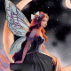 Acuarela y hada sentada en una roca en el cielo nocturno de la luna. alas de mariposa, hadas de cabello rojo, diseño de acuarela. Inside tiene un buen mensaje para el cumpleaños de los chicas, pero esta tarjeta se puede usar para cualquier celebración. Ambos lados de la tarjeta interior son el cielo nocturno con nubes y efecto purpurina.
