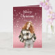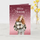 Tarjeta Red White Bokeh Dots Christmas Girl