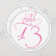 Ideal para fiestas y recepciones de boda, esta tarjeta elegante con número de mesa redondo 13 con letra de caligrafía rosa en negro y blanco es simple y sofisticada, y coordinará con muchos estilos diferentes de flores y decoración de boda.