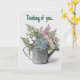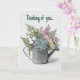 Esta tarjeta presenta una ilustración de una regadera con suculentas, flores y vegetación con un saludo editable encima. En el interior hay un mensaje editable. Puedes cambiar los mensajes o eliminarlos para crear una tarjeta en blanco. También puedes cambiar el estilo de letra, tamaño y color. El color de fondo en todos los lados también se puede cambiar. Esta versátil tarjeta de felicitación se puede utilizar para cumpleaños, condolencias, pensando en ti, tarjetas de agradecimiento, etc.