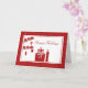 Tarjeta de Navidad con Regalos con Brillo Rojo Debajo del Árbol.