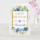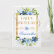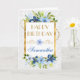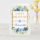 Maravillosa acuarela Azul y Marina Verano Flores de diseño sobre un fondo de encaje blanco floral con borde de Relieve metalizado dorado