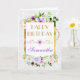 Tarjeta Relieve metalizado dorado Morado y Crema de Flores