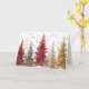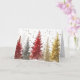Tarjeta Relieve metalizado dorado y árboles rojos con niev