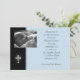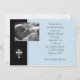 Añada su propia foto a esta invitación o invitación religiosa en azul y negro con la cruz blanca. Perfeccione para los bautismos, los bautizos, la primera comunión santa o las confirmaciones. Las invitaciones son fáciles de modificar para requisitos particulares y de venir completo con los sobres y su opción del papel.