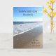 Esta tarjeta de cumpleaños de la playa incluye una foto de una hermosa playa en la parte delantera. Las palabras "Feliz Cumpleaños" aparecen a lo largo de la parte superior y se puede personalizar con el nombre del destinatario del cumpleaños. Al fondo de la playa están las palabras: "Mientras caminas con el Señor". En el interior, la misma playa con colores descoloridos, como telón de fondo para un encantador mensaje de cumpleaños. Derechos de autor Kathy Henis