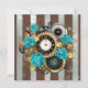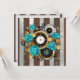 Tarjeta Reloj de vapor y Rosas turquesa a rayas