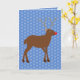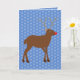 Esta fantástica tarjeta presenta un diseño gráfico de un adorable reno de Navidad con una nariz roja brillante y brillante. El reno es marrón y peludo, tiene grandes cuernos y pezuñas marrones oscuras. Su ojo es negro y tiene una gran sonrisa en su cara.