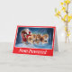Un equipo de Pomeranianos está jalando a Santa y su trineo al cielo.