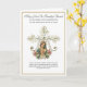 Hacer la Consagración al Corazón Inmaculado de María es una ocasión muy especial y muchas veces las personas devotas a Nuestra Señora renuevan esta Consagración. Esta hermosa tarjeta de felicitación tiene una imagen tradicional católica personalizada del Corazón Inmaculado de María en una Cruz Mariana con lirios blancos. Una cita de San Luis de Montfort está debajo de la imagen. El texto de esta tarjeta también se puede modificar para reflejar la Consagración inicial de la persona a María.