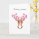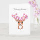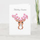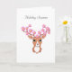 Reno lindo con flores rosadas. El texto de la temporada de vacaciones se puede personalizar.