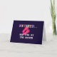 Retirado...Nos vemos en la playa, rocas rosadas, texto blanco sobre azul marino, tarjeta de saludo.