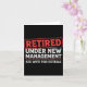 Tarjeta Retired Under New Management Funny Mens Husband Re