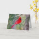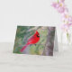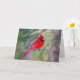 Cardenal del Norte rojo brillante se destaca en tarjeta de felicitación alegre. Ideal para todas las ocasiones. En blanco por dentro, fácil de personalizar para días festivos o mensaje especial.