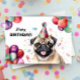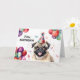 Tarjeta Retrato de perro pug Mascota lindo Gorra Fiesta fe