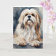 Adorable retrato en acuarela de un dulce Shih Tzu en una tarjeta de felicitación en blanco.