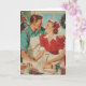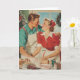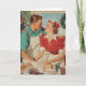 A heartwarming vintage Christmas illustration of a smiling couple baking cookies together. The woman in festive red and the man in teal share a joyful moment in a cozy kitchen adorned with holiday décor. Perfect for Christmas cards, home decor, or gifts that capture nostalgic romance and holiday cheer.