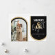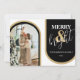 Estas tarjetas minimalistas de Navidad retro son perfectas para enviar deseos de Navidad. Las tarjetas presentan un tema retro con tonos de negro y dorado. Una plantilla moderna de felicitación navideña, tu foto enmarcada con arcos en tonos modernos negros y dorados. Los estilos de fuente y el color se pueden cambiar haciendo clic en el enlace personalizar más después de personalizar.