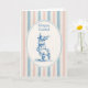 Celebrate the season with this charming vintage-inspired Easter card featuring a classic blue bunny illustration framed in a soft oval design. Set against pastel pink and blue striped backgrounds, this retro Easter card brings timeless spring elegance with a touch of storybook charm.