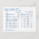 Una tarjeta con líneas azules, rayas colocadas sobre la superficie blanca con receta retro de fondo personalizada en la postal delantera. Se personaliza con tu nombre inicial.