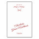 Con una divertida combinación de colores rojo y blanco, esta tarjeta de lugar muestra delicados elementos de diseño que evocan un ambiente nostálgico y retro. Su estética atemporal combina la sofisticación con el capricho, ofreciendo una manera refinada de dar la bienvenida a sus huéspedes. Perfecto para cualquier tema de boda, esta tarjeta de lugar no sólo ayuda a organizar sus asientos sino que también añade un toque personal y elegante a su celebración. Póngalo en pareja con otros elementos de coordinación de la colección para un aspecto boda completo y coherente.