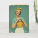 A cheerful, vintage-inspired woman forms a heart with her hands, radiating warmth and positivity. Her bright yellow top, matching headscarf, and classic retro styling pop against the textured teal background. With a joyful smile and nostalgic charm, the artwork captures a timeless expression of affection and upbeat energy.