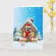 Tarjeta Rhodesian Rdgeback en la nieve con regalos de Navi