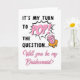 Es tu turno de responder la pregunta -¡con encanto de color caramelo! Esta lúdica tarjeta de proposición de dama de honor presenta un diseño "POP!" de inspiración retro con un ilustracion pop de anillo rosa, perfecto para endulzar el momento. Diseñada para las novias amantes de la diversión, esta tarjeta transmite vibraciones y un estilo atrevido de estilo cómico. Ya sea que le preguntes a tu hermana, a tu hermano o a tu primo, es una forma descarada de invitarla a tu fiesta nupcial. Ideal para sumergirse en las cajas de la dama de honor o entregarse en su brunch de compromiso. Personalizable completo para añadir tu nota personal. ¡Haz la pregunta con estilo!