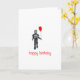 Tarjeta de felicitaciones del feliz cumpleaños. Dibujo lindo de un robot con un globo rojo
