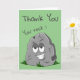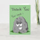 Funny rock gris personalizado con los ojos medio cerrados y una gran sonrisa tososa. Está descansando sobre un pasto verde fresco y la palabra "¡Gracias, roca!" en letras grises oscuras sobre la parte superior de la piedra.