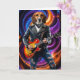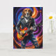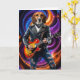 Un zorro inglés con una chaqueta de cuero y jeans andrajosos está tocando la guitarra.