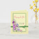Este saludo amarillo femenino y encantador tiene flores hermosas del jardín y acentuado por una cinta y un arco verdes. Vea muchas diversas categorías