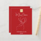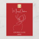 Fondo rojo, y un reno de una línea abstracto blanco. Personalice y agregue un logotipo, nombre y año de su empresa. Texto: Feliz Navidad. Atrás: agrega tu mensaje. 1 hoja = 1 borde impreso de invitación al borde.