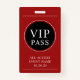 Una insignia de evento VIP de acceso simple que destaca en rojo y blanco con tu fecha de evento. Seleccione su estilo de adjunto.