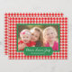 Comparta sus deseos del día de fiesta estos navidad sazonan con una tarjeta plana personalizada única de la foto. Características del este diseño festivas una frontera roja y blanca del houndstooth junto con un marco verde para su imagen junto con un área para el sentimiento que lee la "paz, amor, alegría". Usted puede también personalizar con su apellido. La parte posterior de la tarjeta se adorna con un modelo rojo y blanco encantador del diente de perro. ¡Substituya la foto mostrada por sus la propia para la que está de un diseño bueno que su familia y amigos adoren! Diseñado por el © Susan Coffey del artista. Estudios de Storytree del © de la fotografía, Stanford, CA.