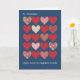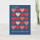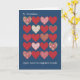 Una tarjeta de felicitación chic para personalizar para el Día de St Dwynwen (25 de enero) con filas de corazones rojos y blancos sobre un fondo azul profundo. St Dwynwen es la santa patrona de los enamorados en Gales y este diseño del Día de St Dwynwen es de un collage de papel pintado a mano por Judy Adamson.