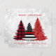 Envíe enseres de Feliz Navidad a amigos y familia con esta tarjeta única de Navidades para bomberos - Línea roja delgada, yeguas negras y rojas y purpurinas rojos en un diseño de fondo de purpurina de nieve plateado. Personalizar con el apellido. Esta tarjeta de Navidades para bomberos es perfecta para familias de bomberos o tarjetas de navidades del departamento de bomberos. DERECHOS RESERVADOS © 2020 Judy Burrows, Black Dog Art - Todos los derechos reservados. Tarjeta roja para el árbol de Navidad del bombero de presupuesto