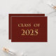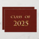 Clase de tarjeta 2025 con textura roja para el fondo y oro para el nombre. La parte posterior es una textura roja con letras doradas para los anuncios de graduación.