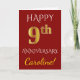 Tarjeta Rojo, Falso Oro 9º Aniversario de Boda + Nombre