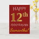 Tarjeta Rojo, Falso Oro Aniversario de Bodas número 12 + N