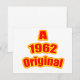 Original, 1962. Con colores vivos rojos y amarillos, este diseño es perfecto para los que les gusta destacarse entre la multitud. Diga feliz cumpleaños de una manera especial con este diseño original de año de nacimiento.